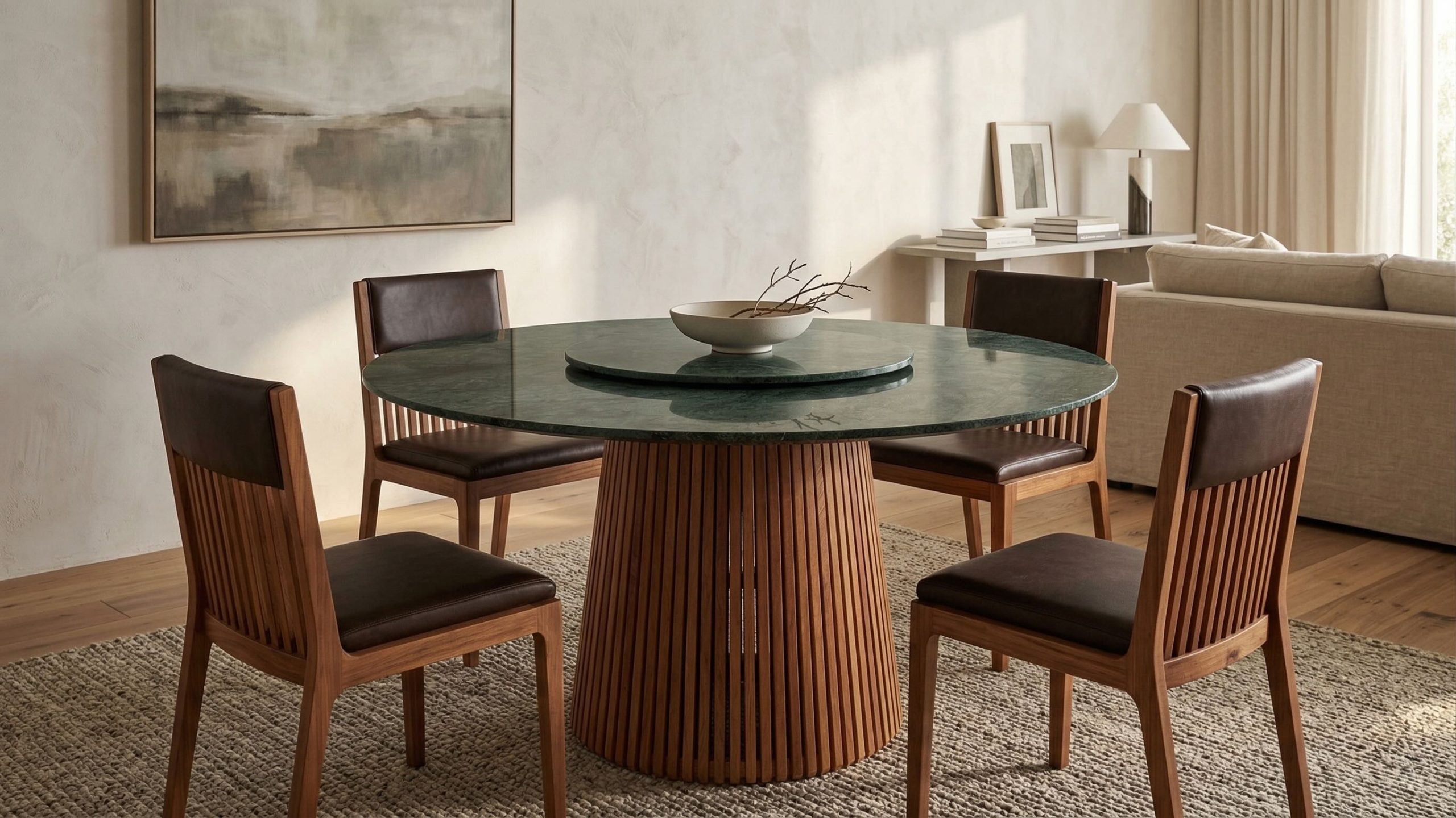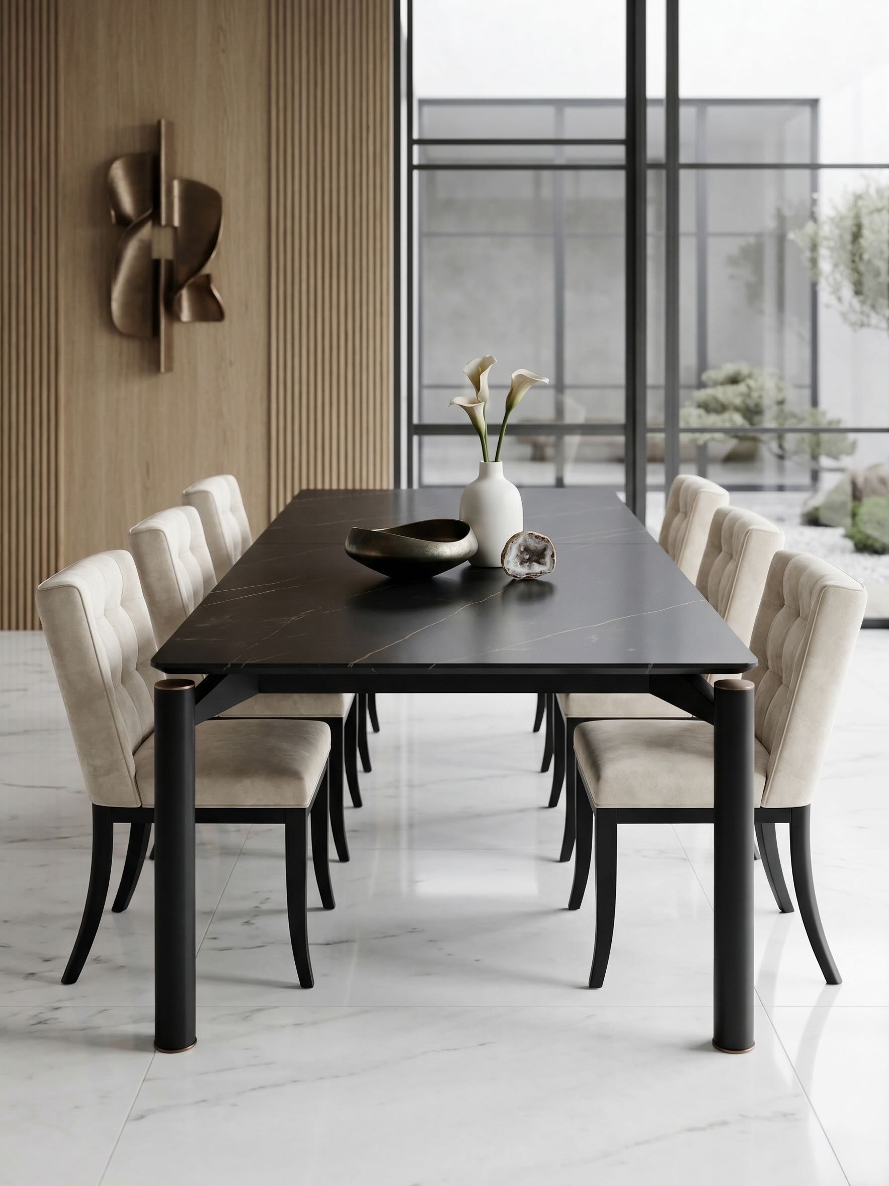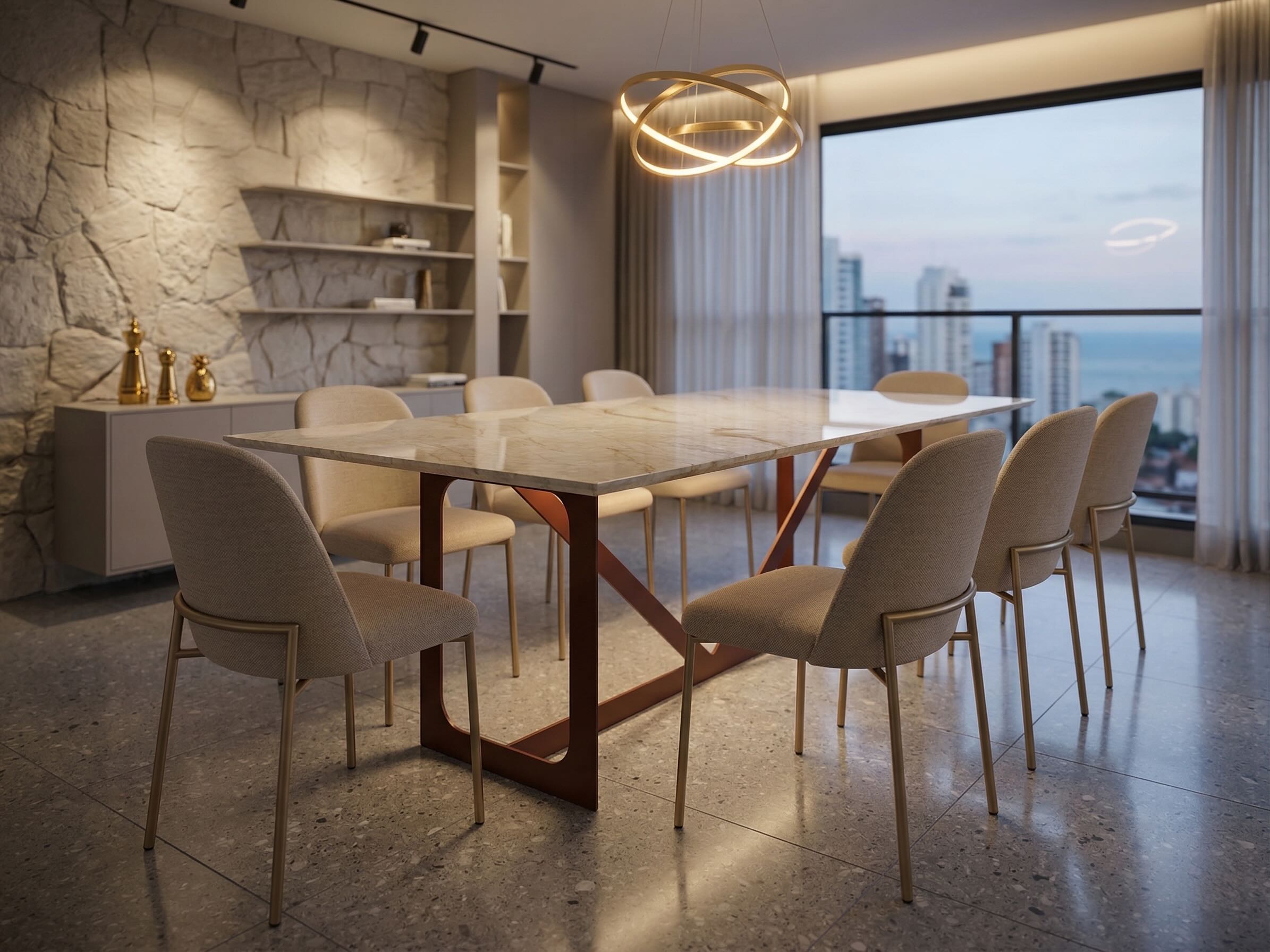 Mesa em marmore natural, acabamento premium e design minimalista.